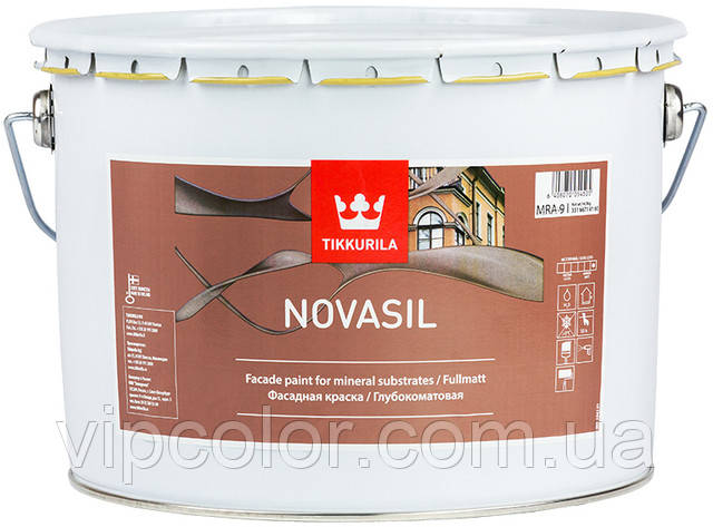 Водорозчинна силиконмодифицированная фасадна фарба на акрилатной основі Novasil від Tikkurila використовується для зовнішнього фарбування поверхонь: бетонних, оштукатурених та мінерально-волокнистих плит. Фасадна фарба Новасил від Тіккуріла застосовується для захисту від різних атмосферних впливів на житлові, торгові, промислові, складські та інші приміщення. Цю фарбу можна також використовувати для ремонтного фарбування добре тримаються старих покриттів.